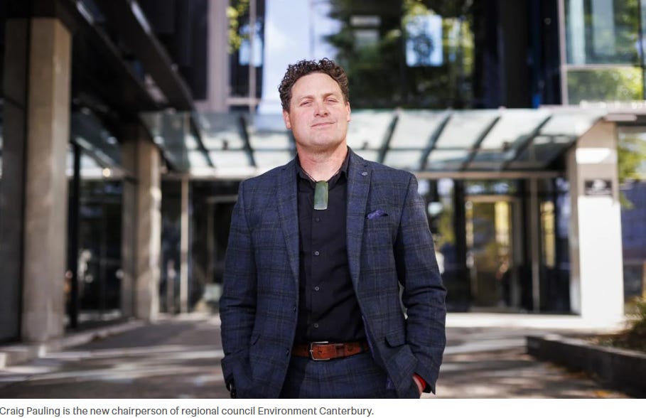 Under Craig’s stewardship, the Canterbury Regional Council does not go by that name - being its only official (real) name. CRC calls itself Environment Canterbury, or ECan, or the Māori word “Waitaha”. (Reminder: it’s a deliberate, discombobulating device of Post-modernists that official names don’t matter and words don’t carry their ordinary meanings. You won’t find “New Zealand” on CRC’s website; it’s all either Aotearoa or Aotearoa New Zealand.)