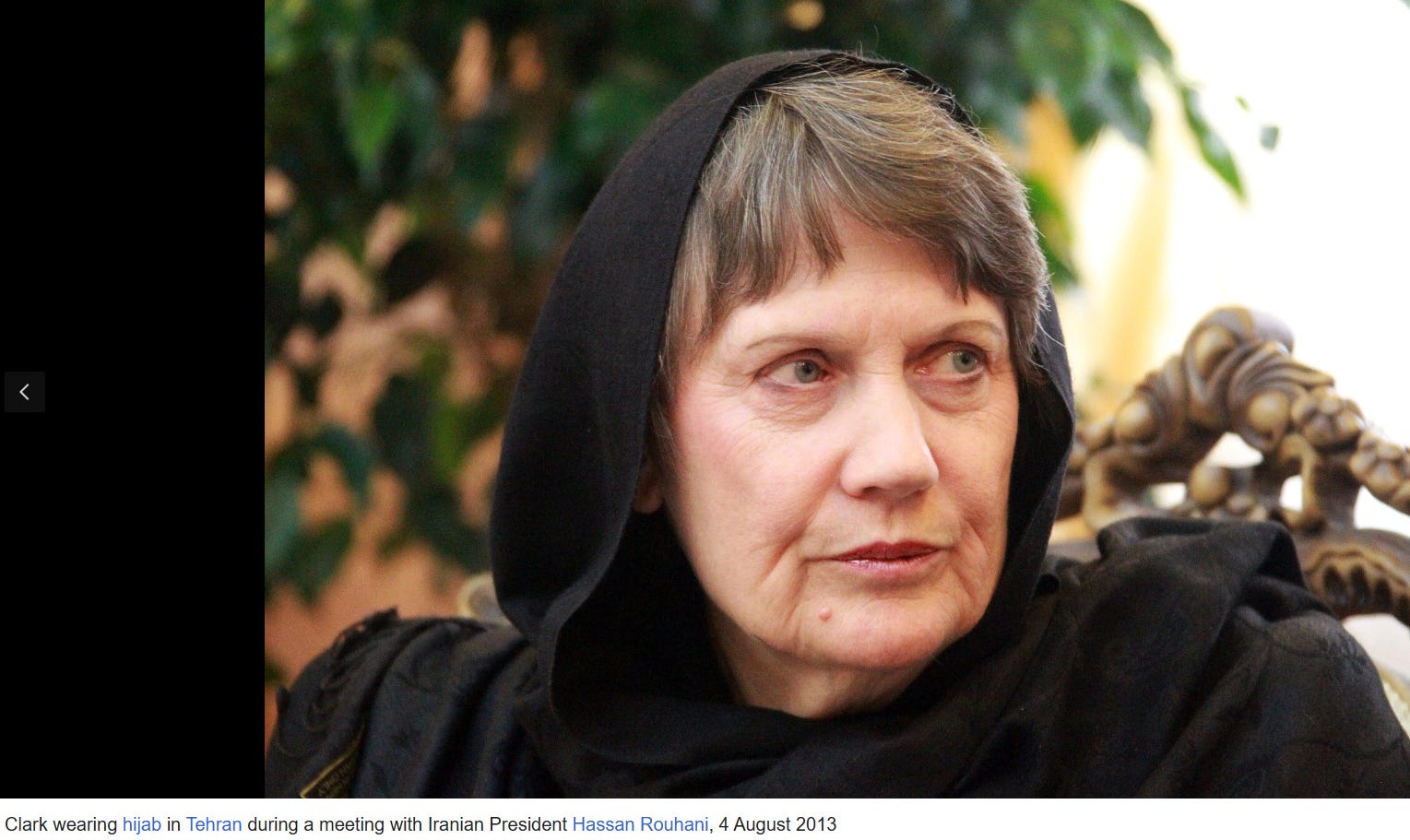 What Helen Clark in Six Outfits certainly doesn’t cover is Helen’s transformation into a useful idiot for Islamists and decent into antisemitism, of which she is rather proud. This pic, from her carefully curated Wikipedia: