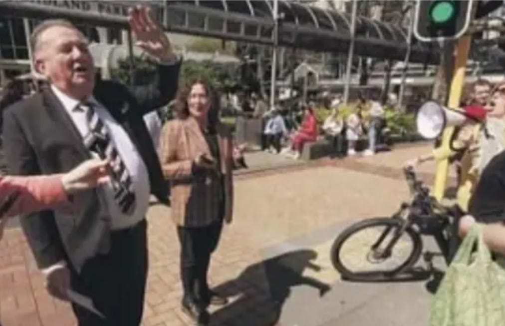 On 1 October 2024, Activist Morse shouted at Resource Minister Shane Jones “You are going to rip this country’s heart out and sell it off to fossil fuel companies”. That’s Morse on the right, shrieking into the loud hailer.