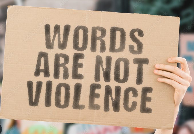 It’s a central slogan of Illiberal Identitarianism that “Words are Violence”. To those uninitiated in the Whacky Ways of Woke, this mantra will come as a confounding and moronic oxymoron. When children claim that a fart is “silent but violent”, they’re not sincerely asserting a risk that the relevant effluvium could be physically harmful. Wokesters, however, claim to sincerely believe that words can and often do inflict genuine physical harm.